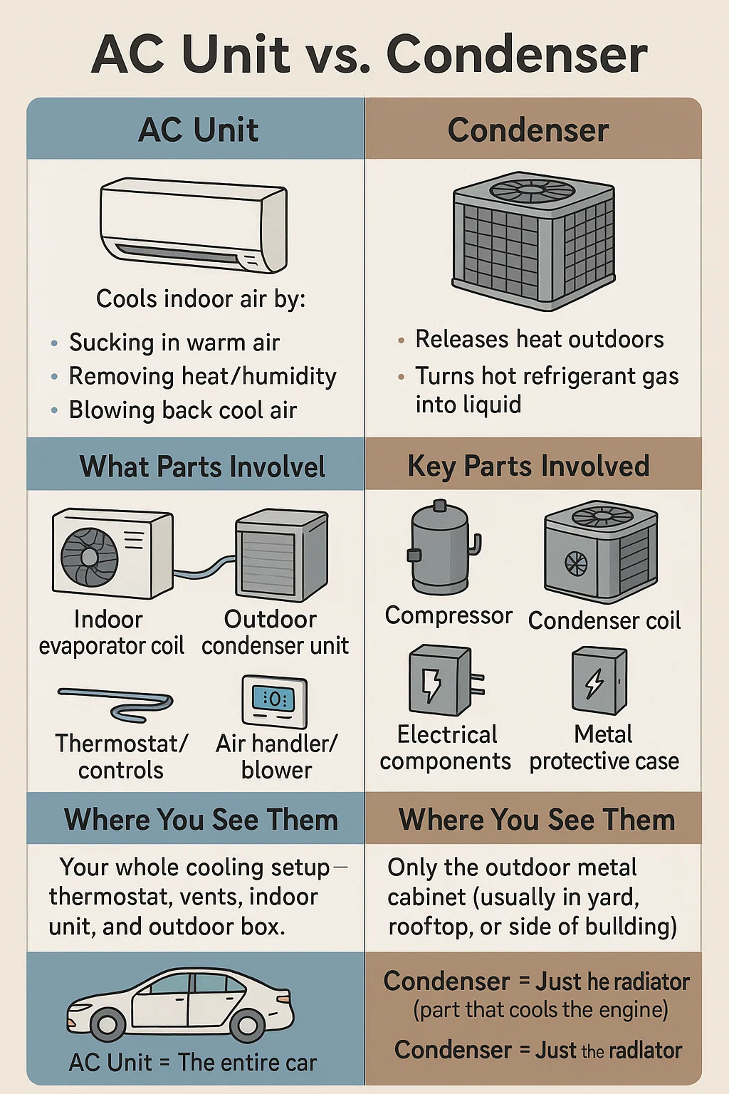 Här är den tydliga skillnaden mellan en luftkonditionering (AC-enhet) och en kondensor :